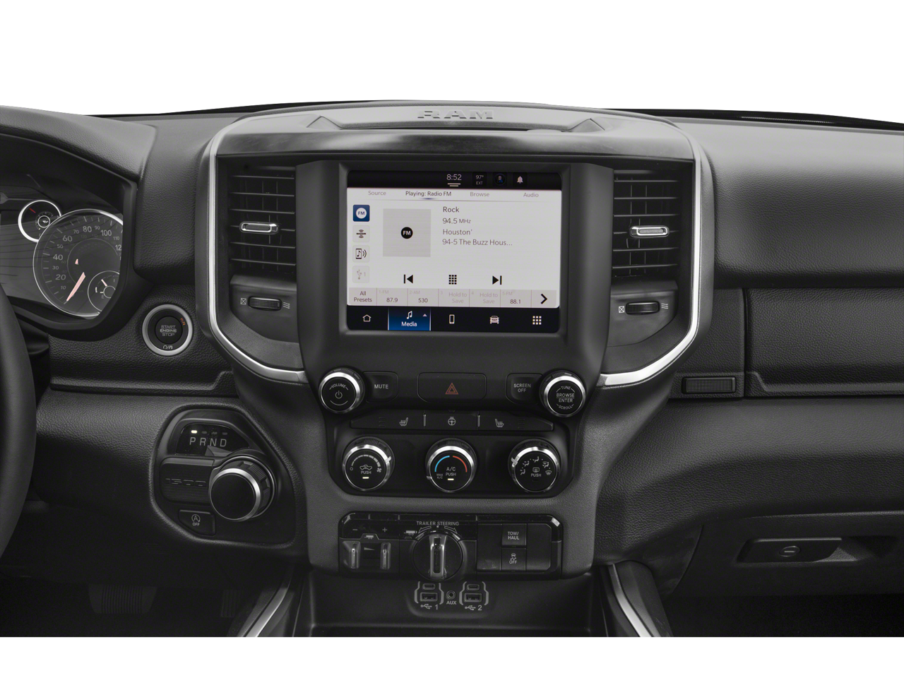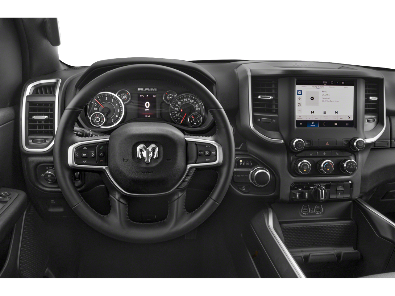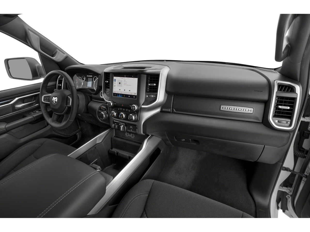 Quick Order Package 23Z Big Horn: Big Horn Badge. Big Horn Level 1 Equipment Group: Google Android Auto; Bluetooth® Handsfree Phone and Audio; USB Host Flip; Rear Window Defroster; Integrated Center Stack Radio; Rear View Auto Dim Mirror; For Details. Visit DriveUconnect.com; For More Info. Call 800-643-2112; Rear Power Sliding Window; Rear Dome with On/off Switch Lamp; Front Fog Lamps; Connectivity - US/Canada; Glove Box Lamp; 4G LTE Wi-Fi Hot Spot; GPS Antenna Input; Exterior Mirrors with Heating Element; Auto Dim Exterior Driver Mirror; Heated Front Seats; Uconnect 5 W Radio with 8.4" Display; Heated Steering Wheel; 8.4" Touchscreen Display; Black Exterior Mirrors; Class IV Receiver Hitch; Black Premium Power Mirrors; Apple CarPlay; Big Horn Instrument Panel Badge; SiriusXM Satellite Radio; Exterior Mirrors with Supplemental Signals; Exterior Mirrors Courtesy Lamps; Passenger Sun Visor with Illuminated Mirror; Electric Shift on Demand Transfer Case; Power-Folding Mirrors; 2nd Row in Floor Storage Bins; Convex Wide-Angle Exterior Mirror Insert. Deluxe Cloth Bucket Seats. Remote Start System. Delmonico Red Pearlcoat. Delmonico Red Pearlcoat. Rear Wheelhouse Liners. **Equipment listed is based on original vehicle build and subject to change. Please confirm the accuracy of the included equipment by calling the dealer prior to purchase.**
